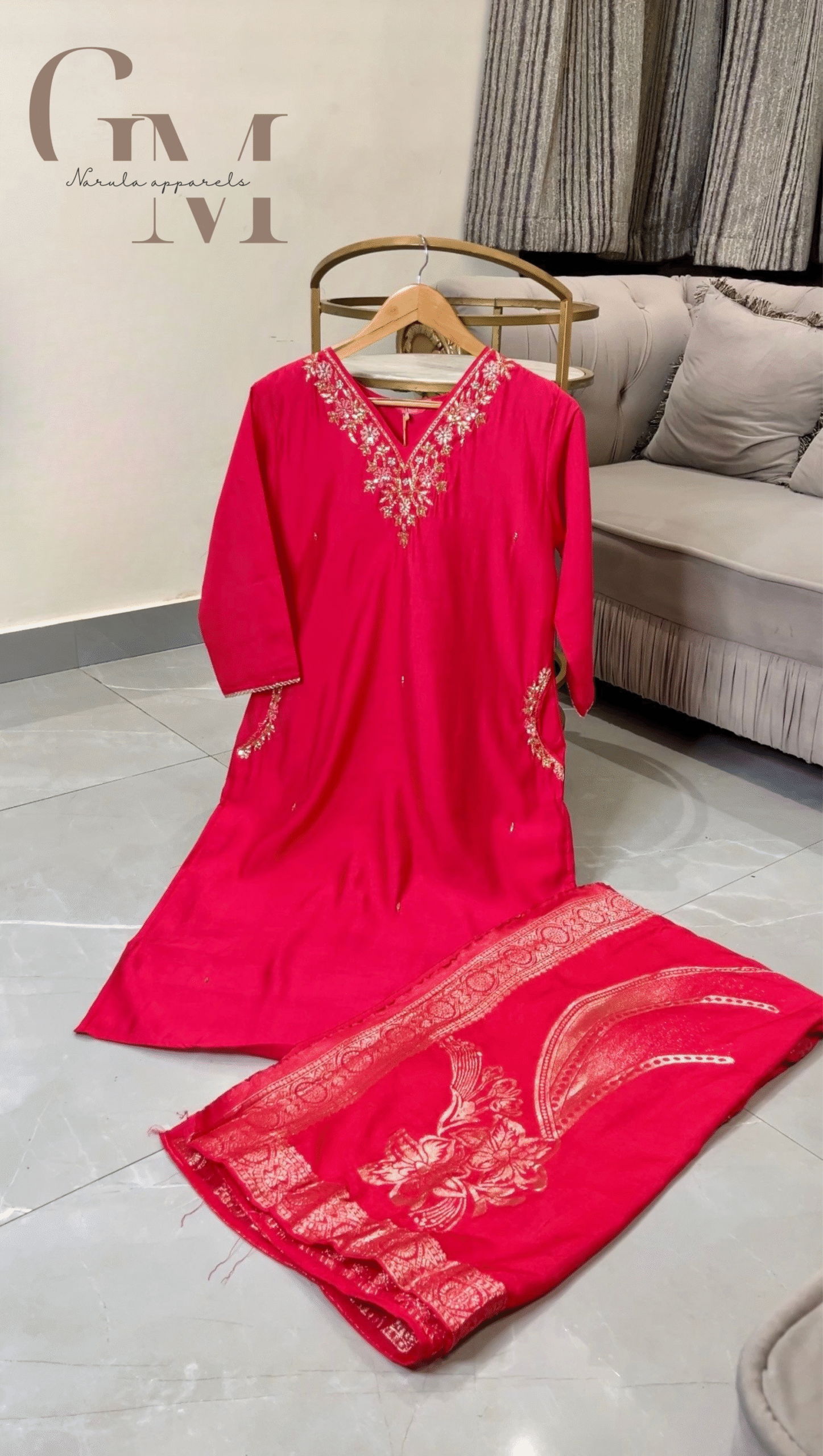 Crafted in premium Roman Silk, this suit exudes timeless grace and sophistication. The neckline and side pockets are beautifully adorned with intricate handwork, adding a touch of elegance to its classic design. Paired with a rich jacquard dupatta, this ensemble is perfect for festive occasions, celebrations, and gatherings.